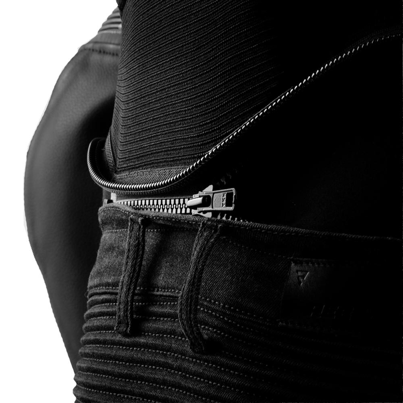 Krátky spojovací zips slúži na rýchle pripnutie k moto nohaviciam.