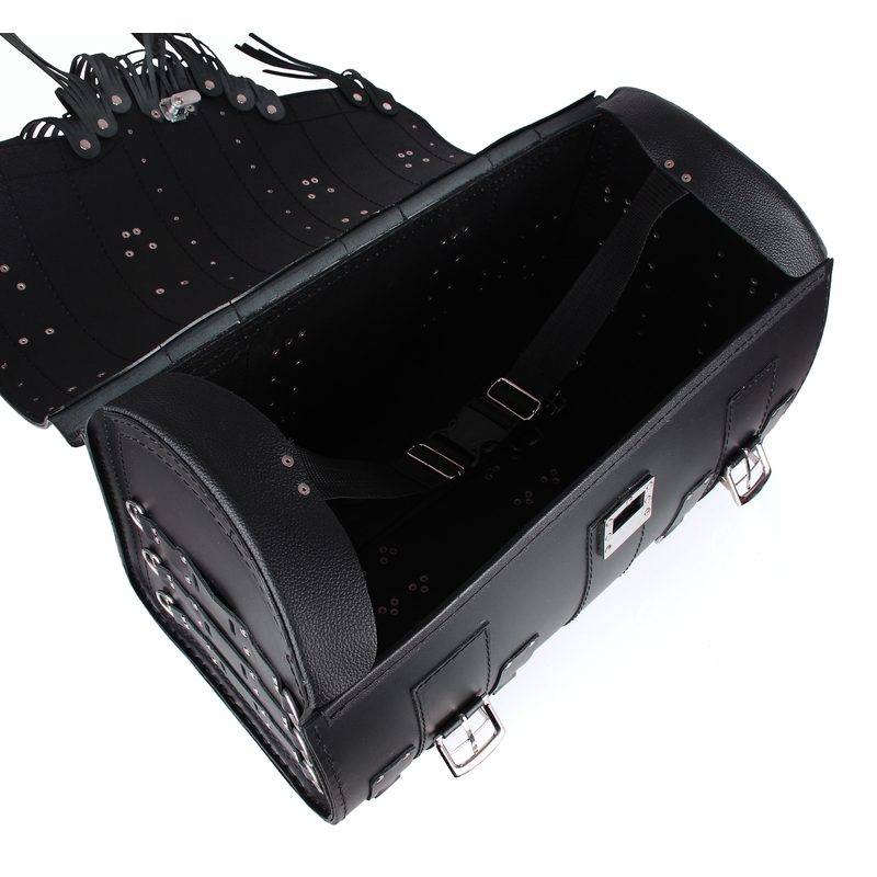 Kufry jsou vyrobeny z hovězí kůže Síla kůže 2-2,2 mm Kufry jsou vyztuženy z vnitřní strany plastovým zpevněním o síle 2 mm Plastové výztuhy kufrů jsou na všech vnitřních plochách Výztuhy zabezpečují stálý a neměnný tvar kufrů Nastavitelná délka ok a popruhů pro připevnění Na bocích příprava pro kapsičky Barva : Černá Délka : 56cm Výška : 35cm Šířka : 32cm Objem kufru : 45 l Kufr obsahuje zámek pro uzamčení,kožené pásy pro připevnění k motocyklu Kufry jsou vyrobeny v EU Nejvyšší kvalita zpracování !