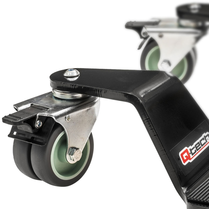 Extra Heavy Duty pojazdná podložka pod centrálny stojan motocykla umožňuje jednoduchú manipuláciu aj v menšom priestore.