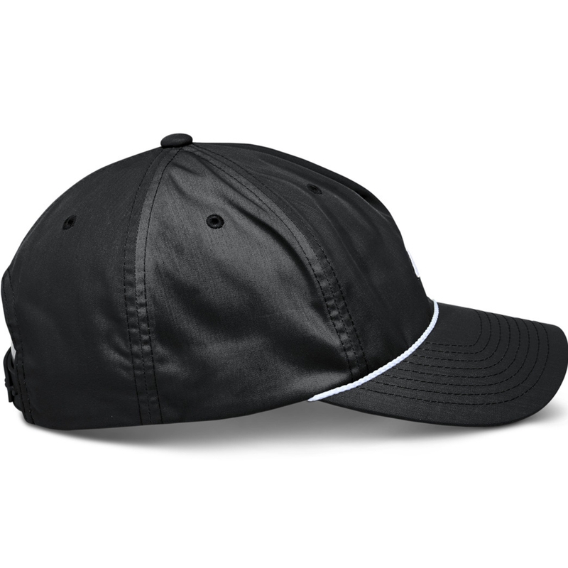 Má ohnutý šilt, zapínanie na plastový pásik a logo na čele.